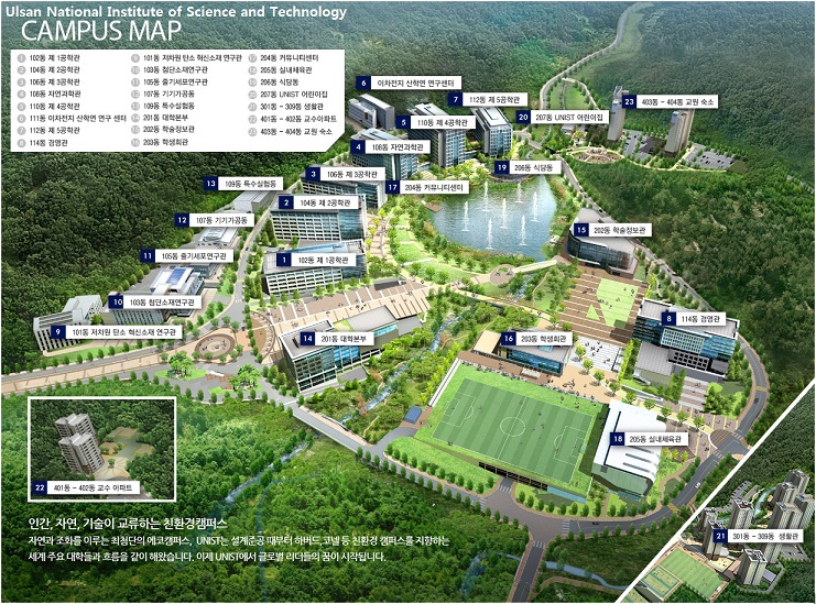 Viện Khoa học và Công nghệ Quốc gia Ulsan nằm ở Ulsan, trung tâm công nghiệp của Hàn Quốc, cũng là nơi đặt trụ sở của các công ty nổi tiếng như Hyundai và SK Energy.